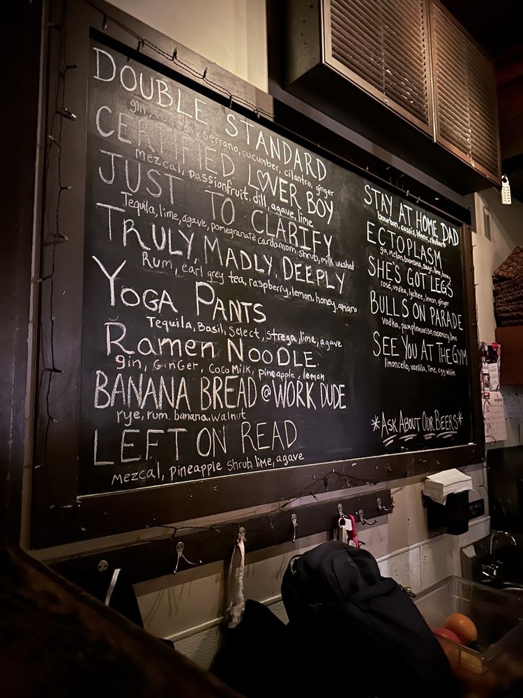 Union Mezcal, blanco tequila, sage, blueberry, lemon, cucumber, red flags.